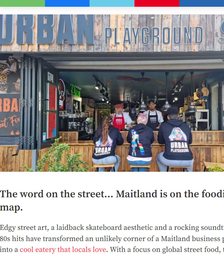 In 2021, Sense of Taste Chef School opened up their own restaurant called Urban Playground, featuring street food (artisanal Pizza, Eisbein, Asian broth, Polish kielbasa and Lebanese flatbreads) right on the school premises in Maitland.